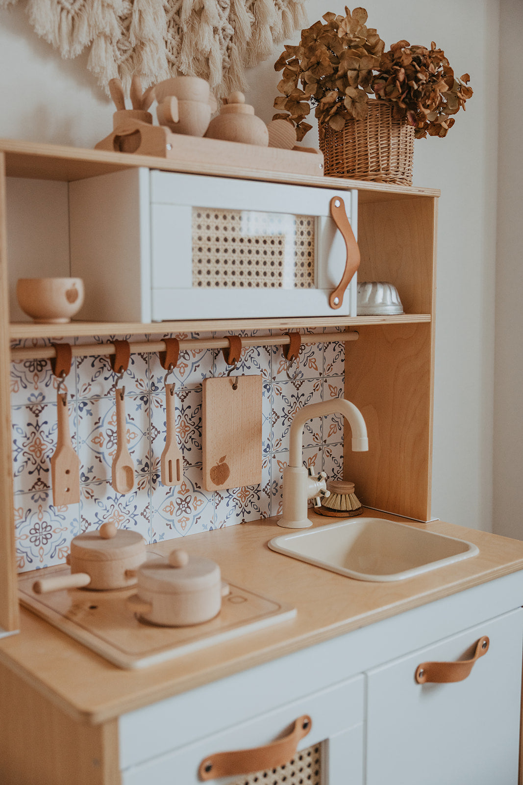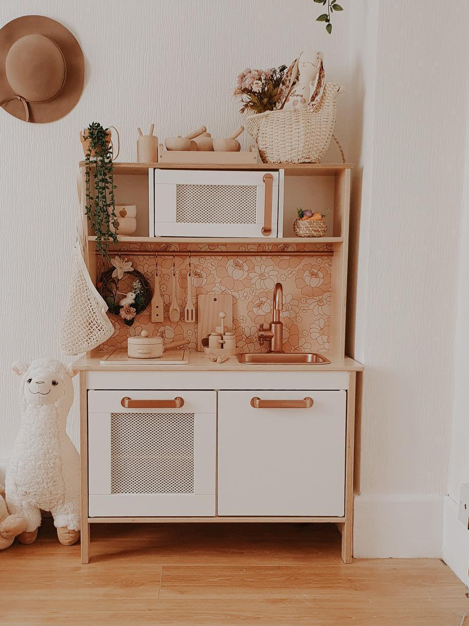 Looks so beautiful and really elevates the standard play kitchen by IKEA! Love it!