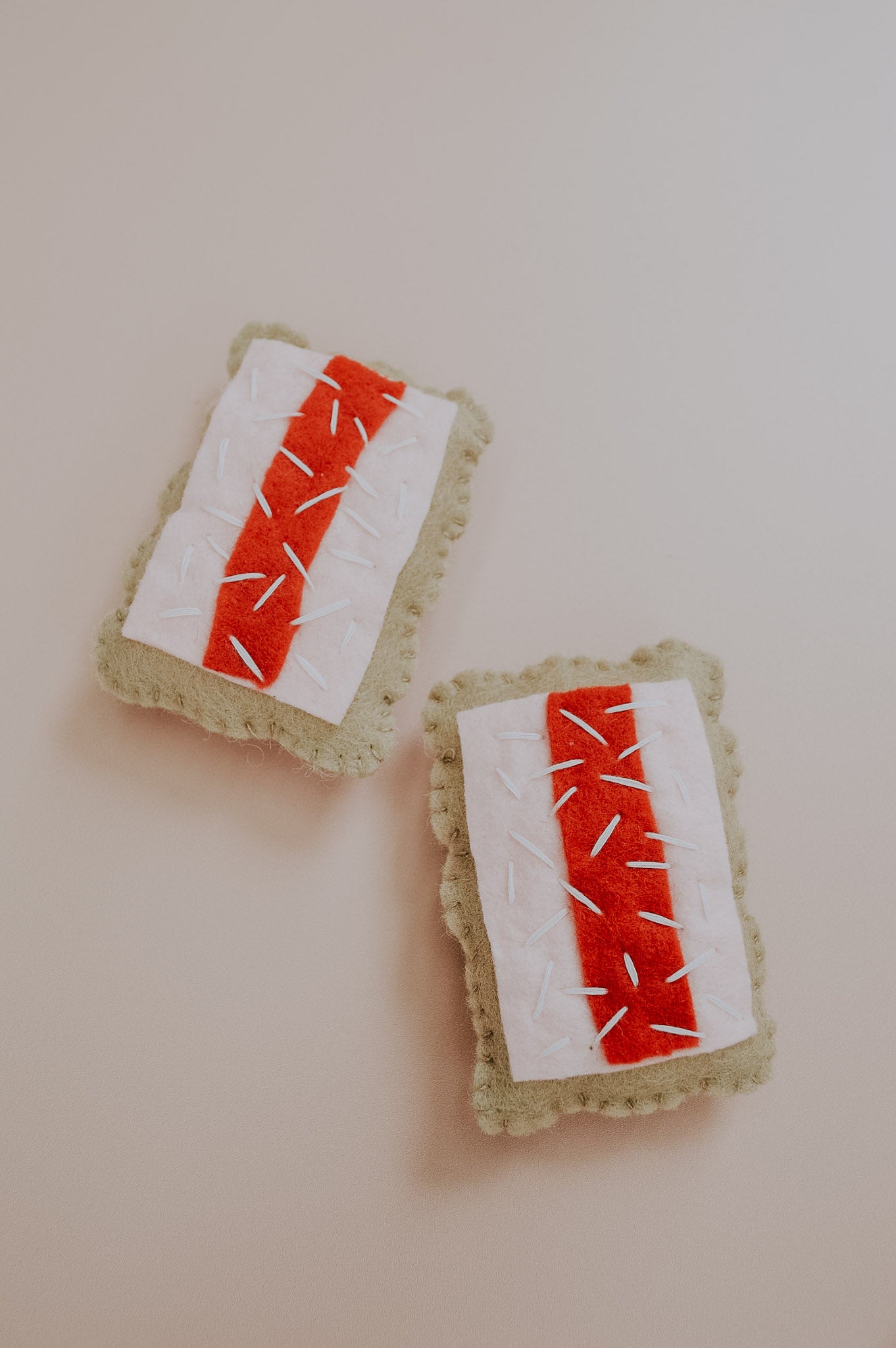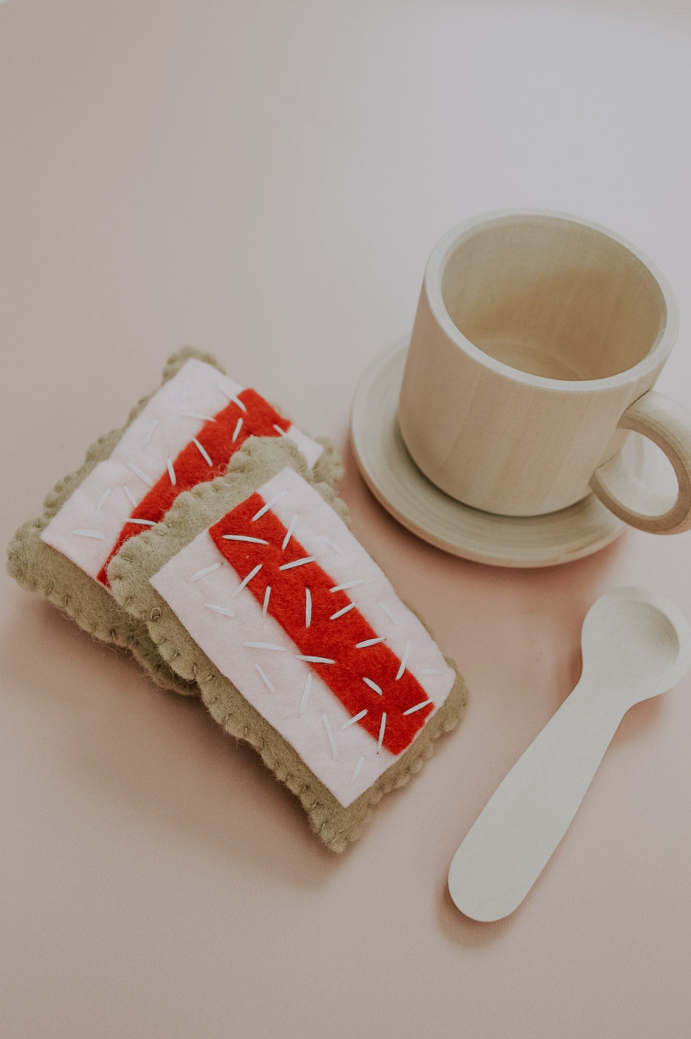 An Australian classic, the Iced Vovo's are a must have for your little ones play kitchen collection, with delicious strawberry & raspberry frosting topped with coconut flecks, these biscuits are designed and handmade in Australia.